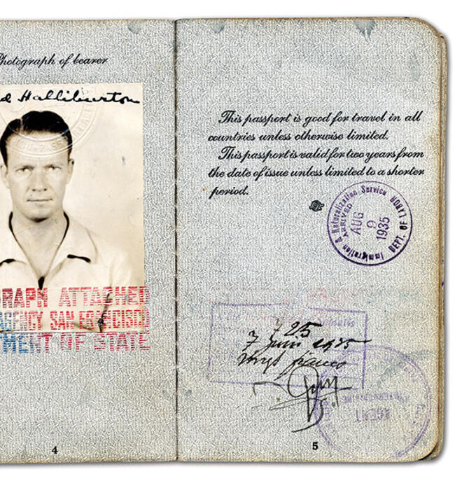 I noted with interest the copy of Richard Halliburton 1921’s passport (feature, July 11). In 1953, when I was in the sixth grade, I read Halliburton’s Complete Book of Marvels (1941, 620 pages). I was fascinated with his many travels, particularly Mount Everest, pictures of which his book included. They were taken after he took the first aerial picture ever of Everest from his airplane, The Flying Carpet, during his around-the-world adventure in that plane. The year I read Halliburton’s book, Sir Edmund Hillary became the first to climb Everest.