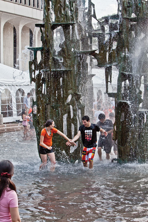 Once they arrived at the fountain, seniors hugged, splashed, and tossed around “Class of 2011” beachballs (theirs to keep for free, of course). Victory was complete.