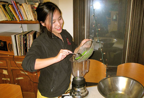 The soup ended up almost lime-green and extremely smooth. It tasted decent enough, with a very intense pea flavor. But having never tried pea soup, I didn’t trust my own review — so I passed the task on to friends in the vegetarian co-op.