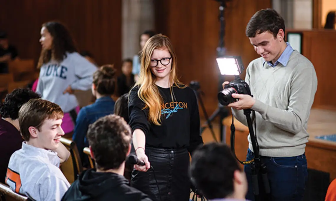“Cut the music!” It’s late night on a Tuesday, and the normally quiet halls of East Pyne are echoing with the sounds of disco. As a Bee Gees medley breaks off mid-wail, Ryan Ozminkowski ’19 directs 20 undergrads toward the task at hand: production planning for Princeton Tonight, the University’s first student-run broadcast television program.