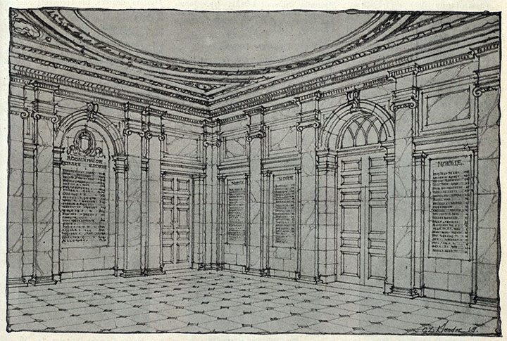 The building in which we gather today, Nassau Hall, is for all Princeton men the cherished symbol of our Princeton life. It embodies for us all that we associate in our thoughts and feelings with the name of Princeton, memories of the past, the ideas which give color and value to life, and those deeper sentiments of our being which can never be adequately expressed in words. And now that we are about to dedicate a room at the very heart of this building to our comrades who died in the World War, the place will become more than ever a shrine, which throughout all time men will approach in a spirit of awe and reverence mingled with a deep sense of gratitude to our noble Princeton dead, who for our sakes and in our stead bravely gave their lives in the hour of their country’s and the world’s need.