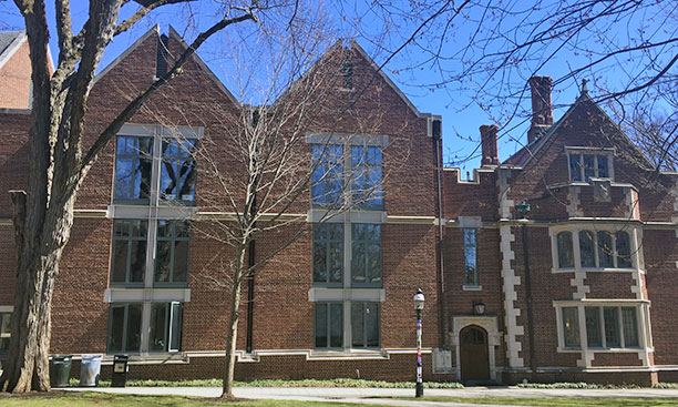 At Harvard, the graduate dormitory One Western Ave., built in 2003, is an innovative work of eminent architects Machado and Silvetti (designers of Princeton’s North Garage and Scully Hall). The dormitory arguably draws from both C&C and Venturi’s later work, first, in its skimmed roof detail that brings the top floor tower windows right up to the underside of a thin roof edge, and, second, in its abstracted brick patterning that evokes both the Hartford Stage Company and the Brandt House in Connecticut, which were also precursors for Venturi’s more elaborate brick patterns seen at Princeton’s Thomas and Schultz Laboratories.
