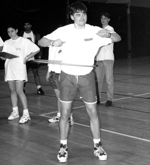 Re the March 18 From the Archives photo: If I had to guess, I’d say this was a residential-college team intramural competition in 1994 or 1995. Karen Lubell ’97 (Mathey) has the clipboard, Ryan LaSalle ’97 (Butler) is in the background in long pants, and I think Vikas Aggarwal ’97 (Forbes) is the guy in shorts in the background (whose face is visible). I can’t place the lead hula-hooper!