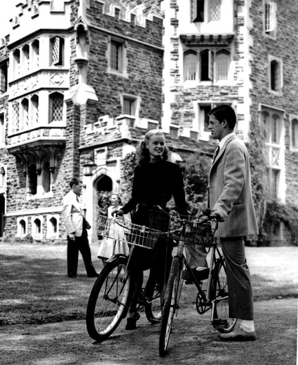 Though they may look like professional models posing for a photo shoot, this attractive couple simply were enjoying Houseparties in 1946, according to archivists. The students visible in the background, as well as the bicyclists, are unidentified. The location is outside Patton Hall. Can any PAW readers name these students or explain where they were riding to?
