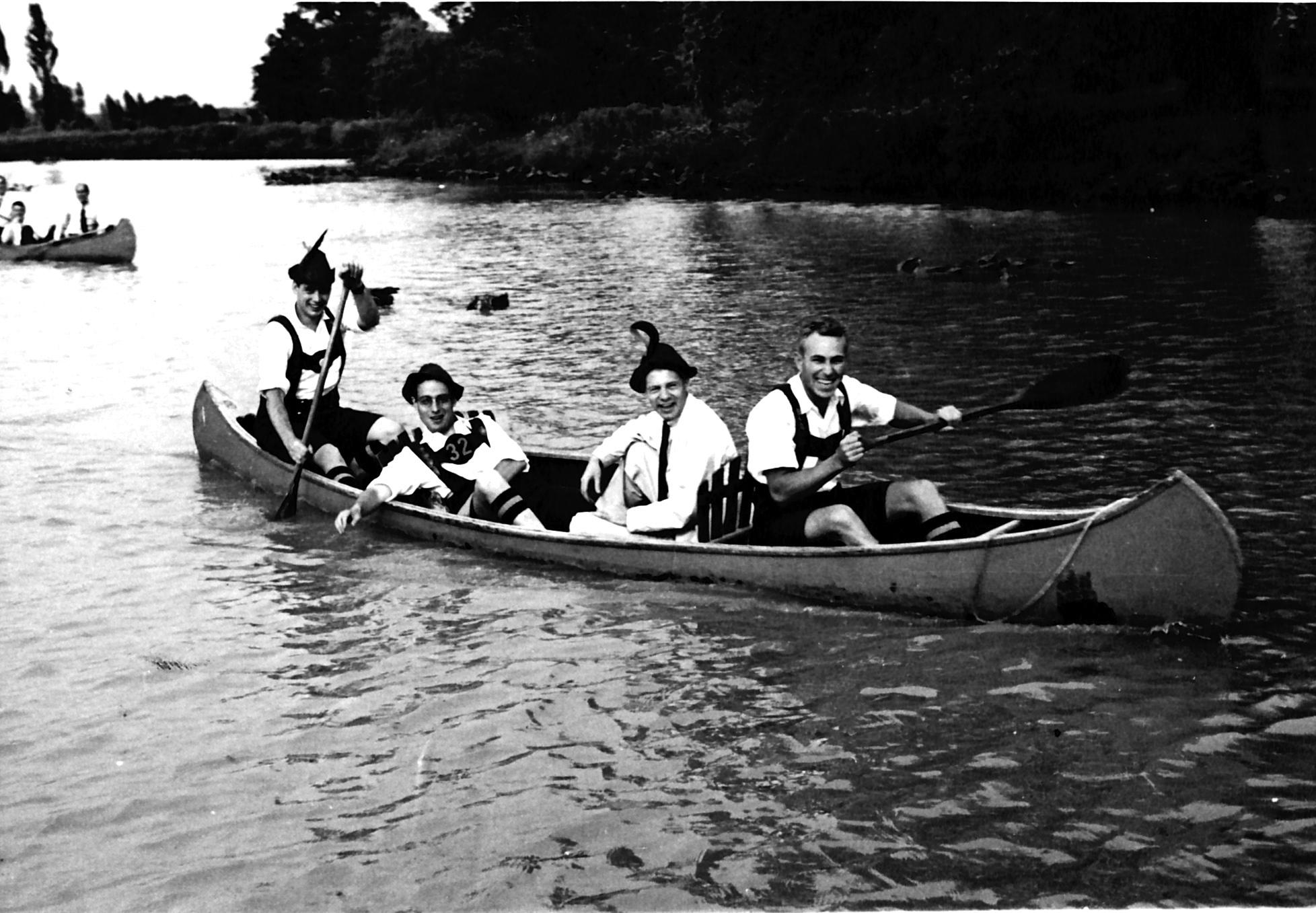 Nothing says Reunions like men in lederhosen in canoes! Archivists date this photo to 1937, and though no one is identified, the number “32” is visible on the chest strap of the reuner second from left, suggesting that the lederhosen may have been the costume for 1932’s fifth reunion. Perhaps some PAW readers can name these alumni or recall why they were canoeing.