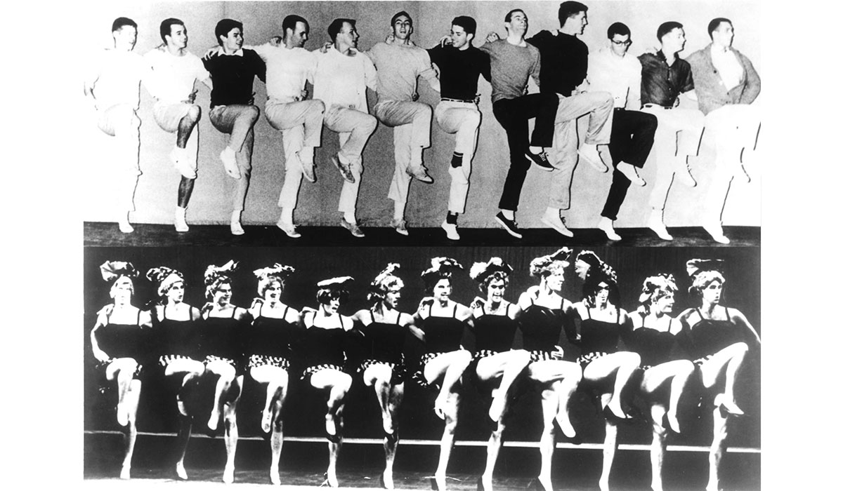 As every woman — and Triangle Club member — knows, a little makeup and a cute outfit can really transform one’s appearance! These before-and-after photos of the traditional Triangle kickline are most likely from Tour de Farce, the club’s 1961–62 production. Don Marsden’64, graduate secretary for Triangle’s board of trustees, helped PAW identify some of the dancers. Perhaps other Triangle alumni can name the rest. According to Marsden, students in the rehearsal photo probably include Jack Gunther ’63, the late John Rife ’63, Jean-Louis de Turenne ’64, Bert Wunderlich ’62, Yan Ross ’64, the late John Mintun ’62, Alexander Kennedy ’62, John Simon ’63, the late Bill Hersey ’63, and Hugh Bartlett ’62. Marsden believes the men in costume are Gunther, Rife, de Turenne, Wunderlich, Kennedy, Simon, Hersey, Bartlett, and, eighth from left, Bill Ballenger ’62.