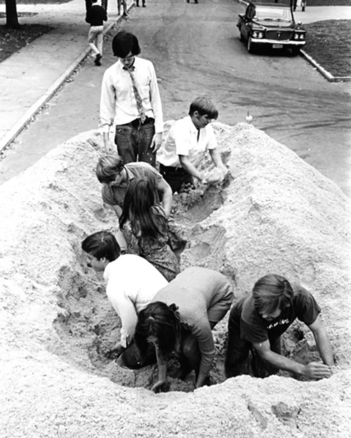 Digging a new route to China? Building a sand castle? Re-creating an archaeological dig in Princeton? What were these young men and women doing? Archivists offer no information on this photo, although the presence of two women (and the hairstyles sported by the men) would indicate that it was taken in the early 1970s. A car in the background looks like a Chrysler from the early 1960s. Can any readers enlighten us regarding what these folks were up to or who they are?