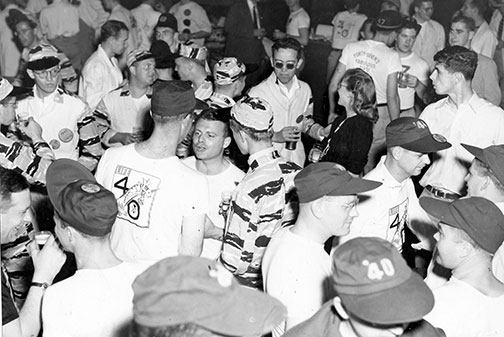 Reunions tent parties look much the same today as they did in 1948 when this photograph appeared in the July 9 issue of PAW. The caption describes the photo as “a bird’s-eye view of the organized confusion in the ’39-’40-’41-’42 tent.” One young alumnus at upper right and facing away from the camera sports a “Forty-Seven’s Fabulous First” T-shirt. Can any of our readers identify the participants?