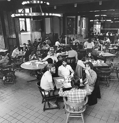 Students dine in the cafeteria that operated in the basement of East Pyne before completion of Frist Campus Center in 2000. After Firestone Library opened in 1947, Chancellor Green and part of East Pyne became the University’s student center and featured a coffeehouse, game room, and, briefly, a pub. With the construction of Frist, these buildings were renovated and now are part of the Andlinger Center for the Humanities. Archivists did not identify the students or the year the photo was taken, but perhaps PAW readers can.