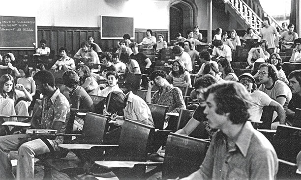 September marks the start of a new school year, which means seeing old friends, making new ones, and a roster of new courses. In this photo by W.L. Bill Allen Jr. ’79, students are seen in McCosh 50 at the start of a class. What is your favorite Princeton back-to-school memory? Share it with us at paw@princeton.edu.