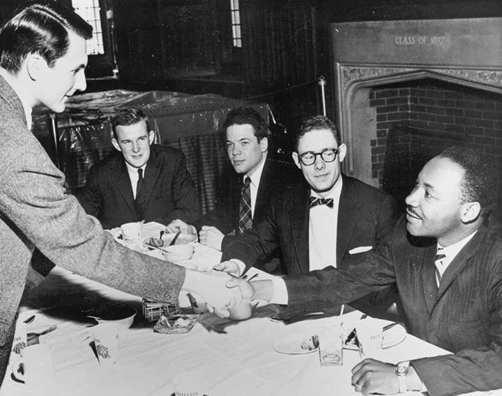 In March 1960 the Rev. Dr. Martin Luther King Jr. preached in the Princeton Chapel. The chapel deacons had dinner with the famed civil-rights leader after his sermon. The Rev. Ernest Gordon, then dean of the chapel, recalled King’s “clear, ringing voice.” Were you at the Chapel service? Can you identify the deacons? Let us know at paw@princeton.edu.