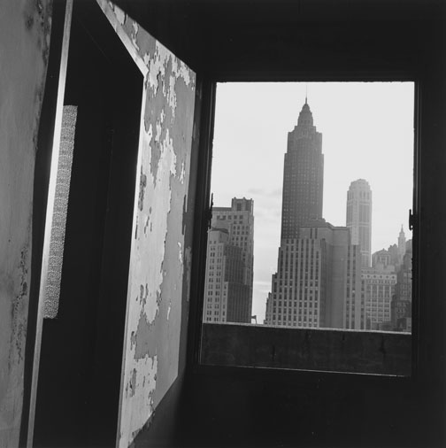 The conceptual centerpiece of the exhibition “The Life and Death of Buildings” at the University Art Museum is a series of photographs by Danny Lyon, The Destruction of Lower Manhattan. The image at right, “View South from 100 Gold Street,” is one of them. These are not photographs of the destruction of the World Trade Center on Sept. 11, 2001, but of the demise of neighborhoods that were torn down to make way for the World Trade Center. The exhibition features 16 images from that 1967 series, and several others of New York City, including Peter Hujar’s 1976 “The World Trade Center, Twilight,” and one image of Sept. 11, 2001 — Thomas Ruff’s print of a digital image of the moment the north tower collapsed.