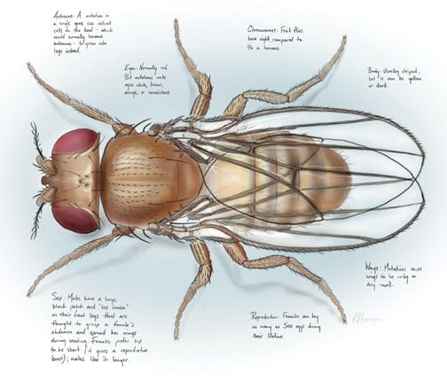 Scientists have continued to identify flies with mutations just by looking at them — different eye and body colors, curly rather than straight wings, and extra wings. These characteristics then are linked to a gene mutation to figure out the gene’s function.