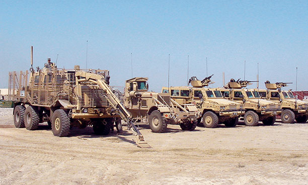The Buffalo is the star of the Ironclaw program, and, like any star, it has its own press kit, music video, theme song, and testimonial page. These are all available at the Web site run by its producer, Force Protection Inc., which describes its product as “able to withstand bomb blasts that would shred a lesser vehicle” and “a regular truck but on steroids.” The 27-foot-long machine comes equipped with a mechanical arm and claw (thus the “Ironclaw” team), 5-inch-thick windows, and steel-lined, blast-proof tires. But its secret weapon is the revolutionary “V-shaped hull design” that will part the shock waves and shrapnel column of an IED just as a boat hull parts water.