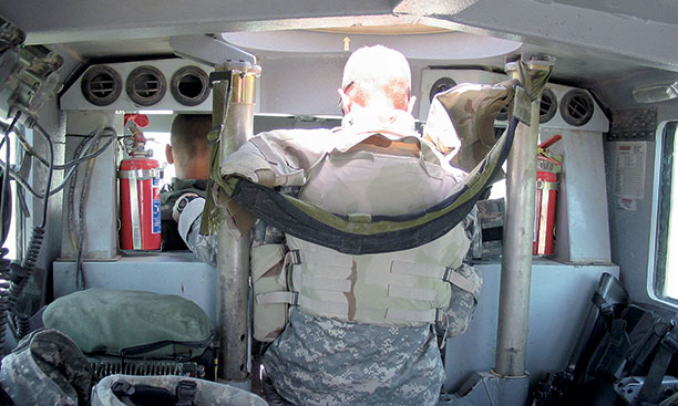Now a career officer, Tate leads the RG-31 in which I’ve been assigned to ride — and the convoy behind it — with the casual confidence of the athlete he used to be. “You got something?” he shouts up at his gunner, whose tan boots are dancing nervously on the steel platform beside my seat.