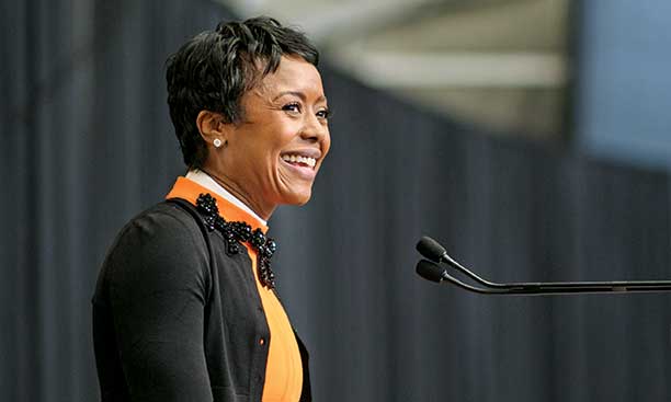 Hobson, the youngest of six children raised by a single mother, also recalled Princetonians who changed her life, including Ariel Investments CEO John Rogers Jr. ’80, who first interviewed Hobson when she was a high school student and later hired and mentored her; and former Sen. Bill Bradley ’65, who taught Hobson that service was “not to be considered a burden, but an obligation.”