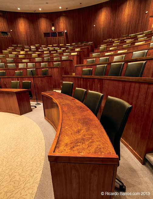 Robertson Hall’s Dodds Auditorium awaits the next lecture by a Woodrow Wilson School speaker. Photograph by Ricardo Barros