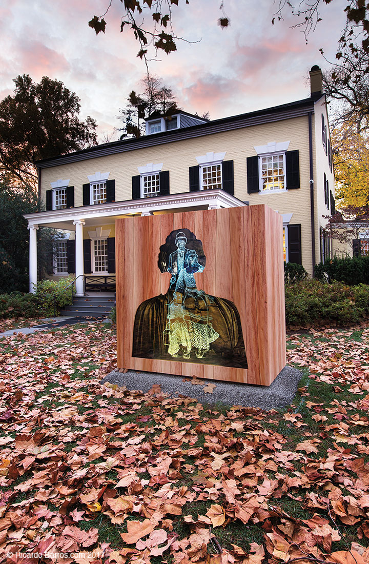 “Impressions of Liberty,” a sculpture by Titus Kaphar, is on view through Dec. 17 in front of Maclean House. It portrays Princeton’s fifth president, Samuel Finley, and a black family representing his slaves, who were auctioned at the house in 1766. The sculpture was commissioned by the University Art Museum in conjunction with the Princeton & Slavery Project.
