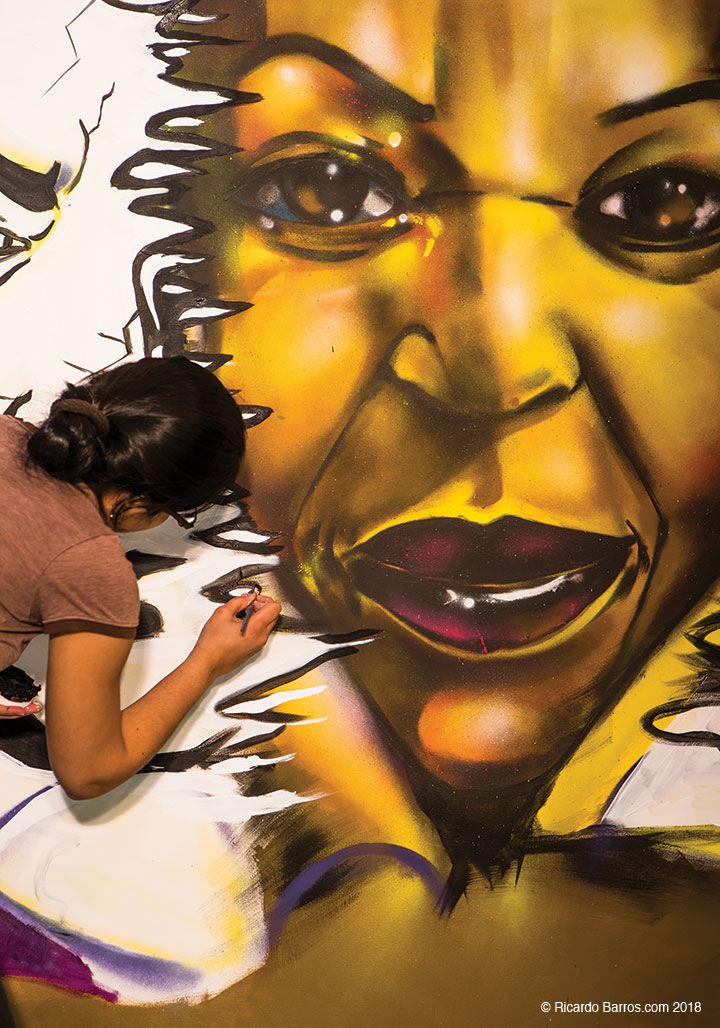 Manisha Kapasiawala ’19 applies finishing touches to an image of professor emerita Toni Morrison, part of a new mural in Butler College created by students and faculty who worked with street artist Will Kasso. READ MORE