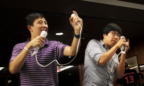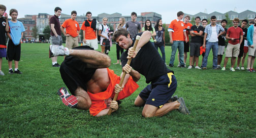This year’s Cane Spree blended traditional events with nontraditional ones. Shawn Du ’14, left, and Jiho Lee ’13 compete in “Wii Wars” at Frist Campus Center Sept. 27. Teddy Eyster ’13 tries to sweep the cane away from Payam Paysepar ’14, in orange, on Poe Field Sept. 29. The freshman class won the four-day competition.