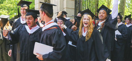But before we do, let me celebrate all the ways in which you have left your mark on this institution, just as it has left its mark on you. You filled the campus with the glorious sound of music, the splendor and exuberance of dance, and the power of theater to both enlighten and entertain. On our playing fields you covered yourselves with glory, with the field hockey, squash and fencing teams winning national titles; the women’s basketball team winning four straight Ivy championships; the football team giving us a bonfire; and the men’s swimming and diving team bringing its unbroken run of Ivy championships to five — to name just a few of your athletic triumphs. You held conferences on science and religion, lobbied for a DREAM Act, engineered without borders, sustained dialogues on race, debated the relative virtues of latkes versus hamantaschen, designed new companies, promoted civic engagement, cooked slow food and taught in prisons. You showed us that it is possible to discuss the most pressing issues of the day with civility and an open mind. You dazzled your teachers with your commitment to learning, and your virtual theses and dissertations will reside in the archives forever. It has been a privilege — and a great deal of fun — to bear witness to your journey through Princeton.