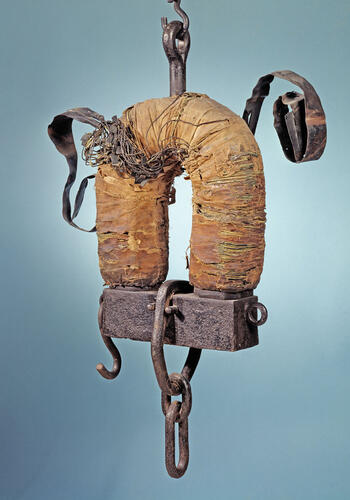 The small wooden box on display in the Fine Hall Library bears no resemblance to today's laptop computers, but according to historians, Marquand's "logical machine" incorporated ideas that later became the foundation for complex digital devices. Working in the 1880s, Marquand used his arrangement of buttons, rods, and pins to simplify statements of Boolean logic, the algebraic system that underlies computer programming. The machine's outputs are binary, like the bits of a modern computer--each arrow on the machine points horizontally (on, or "1") or vertically (off, or "0"). While computer pioneers used similar principles, they did not draw directly from Marquand's work, which was largely forgotten. He became better known as the founder of (and a longtime professor in) Princeton's art and archaeology department.