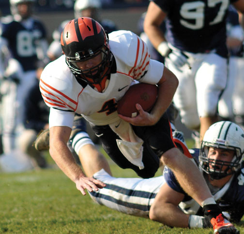 Nov. 17. With several key players sidelined or limited by injuries, the Tigers surrendered three touchdowns to the Big Green in six minutes following halftime and lost by their largest margin of the season. But the team’s impressive gains gave it much to be proud of.