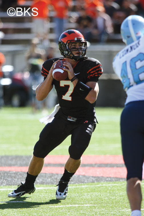 In the opening quarter, sophomore quarterback Tommy Wornham, making his first collegiate start, led the Tigers on a seven-play, 42-yard scoring drive, finding receiver Jeb Heavenrich ’11 in the end zone for a five-yard touchdown toss. With the extra point, Princeton led 7–0.