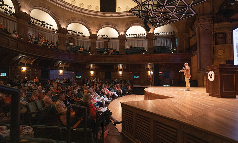 During his hour-long presentation with alumni in Richardson Auditorium, President Christopher Eisgruber ’83 delivered an update on what has been happening on campus, from the large number of construction projects to 16 titles won by Princeton athletic teams. He took questions at the end of the talk, and here are the key moments:
