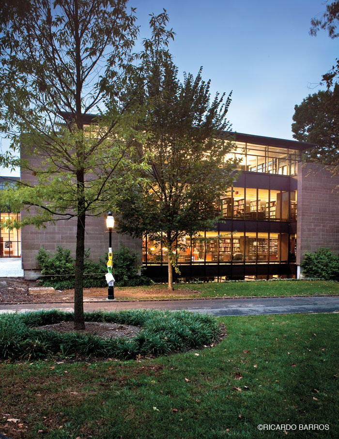 Marquand Library The sky darkens and Marquand Library of Art and Archaeology lights up, beckoning scholars in search of a tranquil study space. The library, adjacent to the Princeton University Art Museum, was renovated in 2003 and houses some 400,000 volumes.