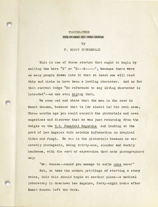 The “discovery” in Firestone Library of a previously unpublished short story by F. Scott Fitzgerald 1917 made headlines over the summer. The 8,000-word story, called “Temperature,” was rejected for publication in 1939; it offered parallels between the life of a fictional writer in Hollywood with an alcohol problem and a heart condition, and of Fitzgerald himself, who died the following year. Media accounts focused on how Andrew Gulli, managing editor of a literary quarterly called The Strand Magazine, had found the story among Fitzgerald’s papers, which were donated to the University Library in 1950 by Fitzgerald’s daughter, Scottie. Gulli knew the library had particular titles because they are listed online in the finding aid for Fitzgerald’s papers; the library provided photocopies of manuscripts he requested. Don Skemer, curator of manuscripts in the Department of Rare Books and Special Collections, said that if “Temperature” was hidden, “it was hiding in plain sight.” He added that the unpublished short stories are known to Fitzgerald scholars.