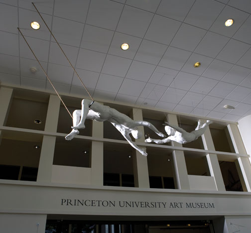 “Circus Acrobats,” a 1981 sculpture by George Segal, has been installed above the entrance to the University Art Museum in McCormick Hall. A recent gift from the George and Helen Segal Foundation, the work exemplifies Segal’s plaster sculptures and installations depicting scenes from everyday life. The summer also saw the departure of Magdalena Abakanowicz’s “Big Figures,” the grouping of 20 headless bronze figures outside the building’s front entrance that had been on loan for five years from an anonymous donor.