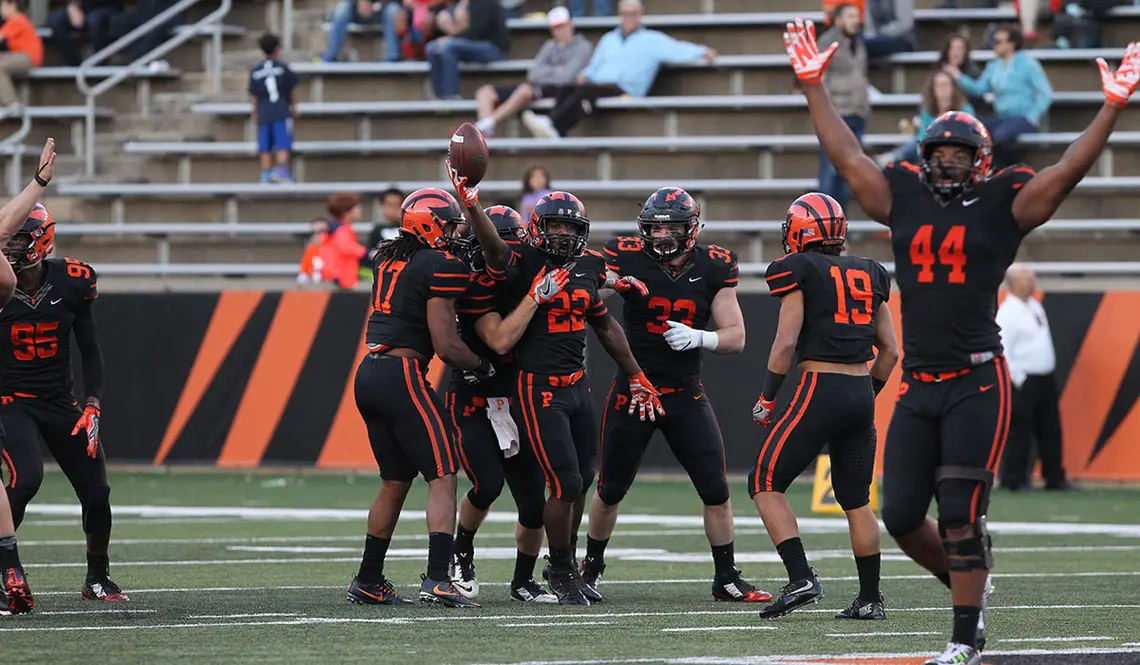 Princeton trailed 14-7 in the first half and 14-10 at halftime. Their 28 straight second-half points helped them thwart an upset bid by Dartmouth, the defending Ivy champions, and finish 8-2 overall, 6-1 in Ivy play. Princeton’s only loss was a 23-20 overtime defeat at the hands of Harvard.