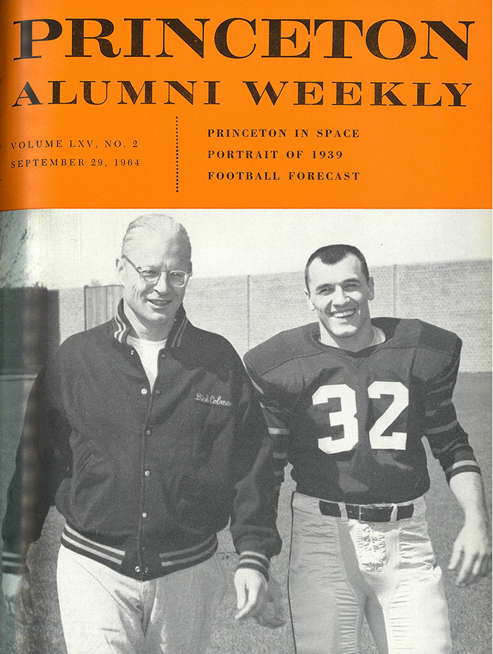 SportsFront and Center: A Gallery of PAW Football Covers Published Oct. 15, 2019 Sept. 26, 1947: Captain Richard West ’48, left, with coach Charlie Caldwell ’25 Oct. 20, 1950: Dick Kazmaier ’52 fights off a defender on his way to the end zone against Rutgers. Sept. 29, 1964: Captain Cosmo Iacavazzi ’65 *68, right, with coach Dick Colman Oct. 4, 1976: Illustrator Arnold Roth’s whimsical interpretation of Ivy League football Dec. 1, 1981: Bob Holly ’82 scores the winning touchdown against Yale. Dec. 7, 1988: Quarterback Jason Garrett ’89 Sept. 15, 1993: Running back Keith Elias ’94 Nov. 14, 2012: Garrit Leicht ’15 celebrates the Tigers’ comeback win against Harvard. No responses yetJoin the conversation Name Email Princeton affiliation - Select -AlumniFacultyStaffStudentCommunity MemberNon-alumni ResponsePlain textFull name and Princeton affiliation (if applicable) are required for all published comments. For more information, view our commenting policy. Responses are limited to 500 words for online and 250 words for print consideration. The Latest See all On the CampusProfessor Corina Tarnita on the Epstein Files: ‘I Wish I Had Never Known Him’ PrincetoniansEddie Glaude Jr. *97 on 100 Years of Black History Month: ‘I Find Hope in Our Story’ Sports Exciting Seasons for Men’s and Women’s Hockey SportsTiger Hockey Stars to Play for Canada in Milan Cortina Olympics Sports Madison St. Rose ’26 Expands Her Arsenal Related News On the CampusProfessor Corina Tarnita on the Epstein Files: ‘I Wish I Had Never Known Him’Princeton connections in the newly released files also include then-trustee Eileen Guggenheim *82 and attempts by Epstein to befriend professors PrincetoniansEddie Glaude Jr. *97 on 100 Years of Black History Month: ‘I Find Hope in Our Story’ SportsMen’s and Women’s Hockey Take Turns with Exciting Baker Rink Performances
