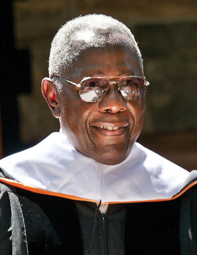 The awarding of an honorary degree to baseball legend Hank Aaron brought the graduates and their families to their feet, and the warm reception continued for other honorees: Geoffrey Canada, the chief executive officer of the Harlem Children’s Zone; Susan Desmond-Hellmann, an oncologist, clinical scientist, and now chancellor of the University of California, San Francisco; Charles Coulston Gillispie, the Dayton-Stockton Professor of History emeritus at Princeton; Judith Jamison, a dancer, choreographer, and the outgoing artistic director of the Alvin Ailey American Dance Theater; and Robert H. Rawson Jr. ’66, former chairman of the trustee executive committee.