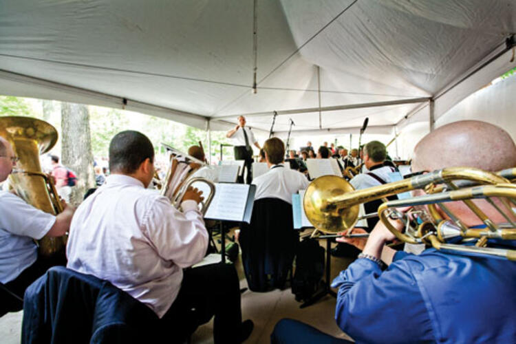 Commencement music is “very joyous and yet festive in a serious way at the same time,” notes Michael Pratt, conductor of the University Orchestra and director of Princeton’s Program in Musical Performance. Though Pratt usually conducts at Commencement, he was injured in a biking accident recently and handed the baton to Paul Bryan, a faculty member at the Curtis Institute of Music, who conducted members of the Chamber Orchestra of Philadelphia. Among the pieces played were British military-band classics, including William Walton’s “Crown Imperial March,” written for the coronation of George VI; Donald Hunsberger’s arrangement of Dmitri Shostakovich’s “Festive Overture”; and marches by John Philip Sousa. The group does not perform Elgar’s “Pomp and Circumstance,” says Pratt: “It’s a great piece, but it’s been run into the ground.”
