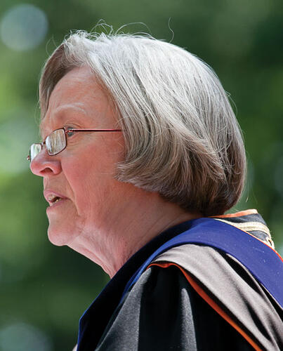 The names of honorary-degree recipients are not released until Commencement Day. A committee of trustees, faculty members, a staff member, and students make recommendations to the board of trustees, which votes on the names. “You want to put before [graduating students] people that have some connection to the life of the mind and the University’s mission, but also who could serve the students as role models,” explains Halliday.