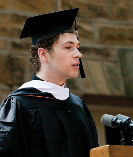 “ I hope that as new graduates, we will all have the courage to continue to think both deeply and independently and have original ideas which do not fit into the mold. Certainly this is one of the best ways to demonstrate the spirit of intellectual curiosity and capacity that we have cultivated for the last four years. ” — Valedictorian John Pardon ’11, who discussed the attitude toward learning developed at Princeton and encouraged classmates to “seek out great teachers throughout your life,” be curious, and seek challenges.