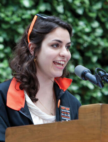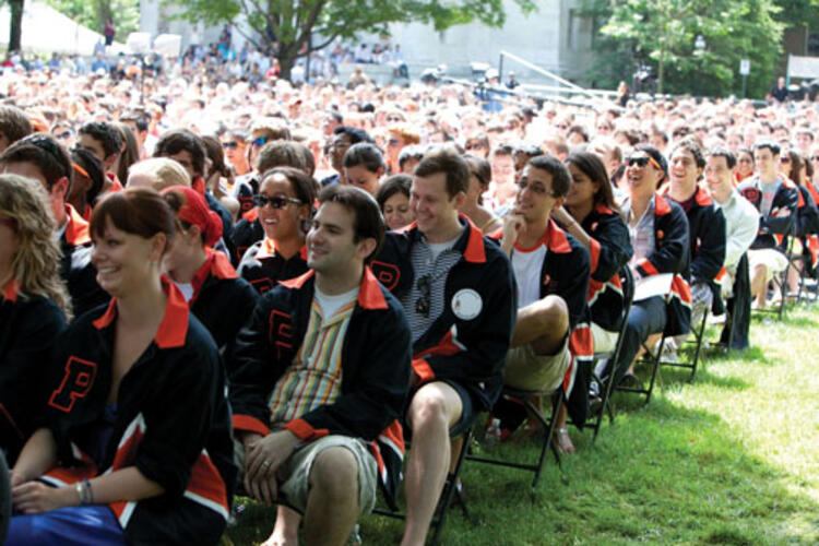 Though academic stars are honored at Commencement, the funniest seniors have their day in the sun at Class Day, the day before. This year, 25 seniors competed for the honor of being Class Day speakers by submitting written speeches, and the top 10 — as judged by the Class Day chairs and class officers — were invited to audition. The winners: Dan Maselli ’11 and M. Cristina Luzarraga ’11, who scored lots of laughs (see page 57). The tradition of having students speak at Class Day began in 2001 and originally was not meant to be humorous, though it evolved that way quickly, says Tom Dunne, associate dean of undergraduate students. One reason: Adam Ruben ’01, who was one of the first Class Day speakers. Ruben went on to become a molecular biologist — and a standup comedian. Some graduates see Class Day as an audition for a professional job in comedy, and Princeton legend says that the speech by Jay Katsir ’04 led to his job writing for The Colbert Report.