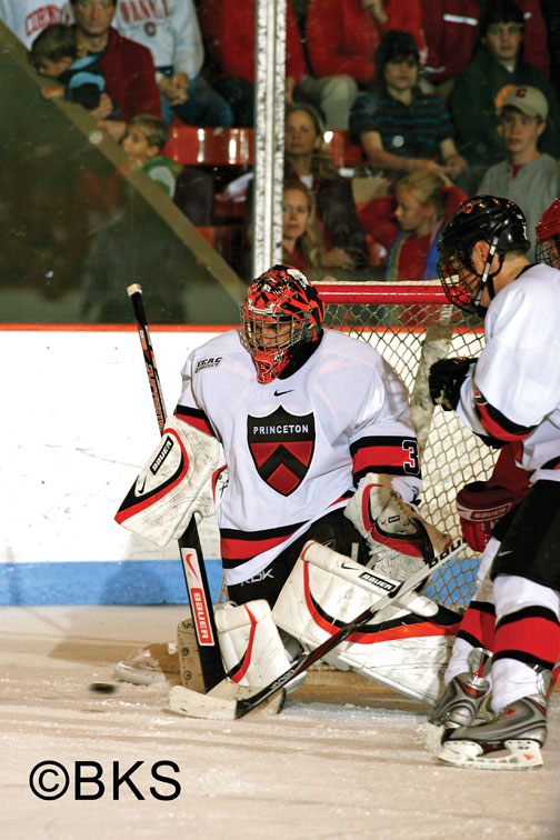 Avenging an early-season loss to No. 11 Yale, Princeton shut out the Bulldogs, 2–0, Feb. 21 in what was arguably the team’s most important win. Junior goaltender Zane Kalemba, whose 1.58 goals-against average ranked first in the nation, was stellar against Yale, making 31 saves to earn his second shutout of the season. Defenseman Jody Pederson ’10 and center Kevin Kaiser ’10 scored Prince-ton’s goals.