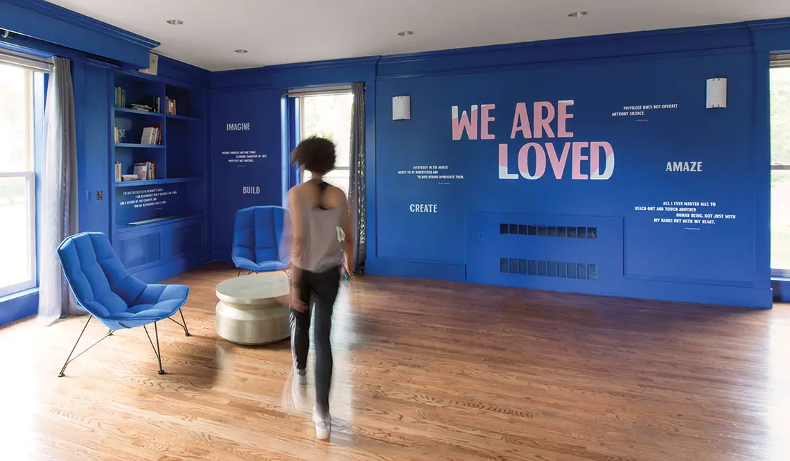 On the second floor are four cultural-affinity rooms for black, Asian, Latino, and Arab and Middle Eastern students; each room was designed by students and has its own personality in terms of wall decorations and furniture.