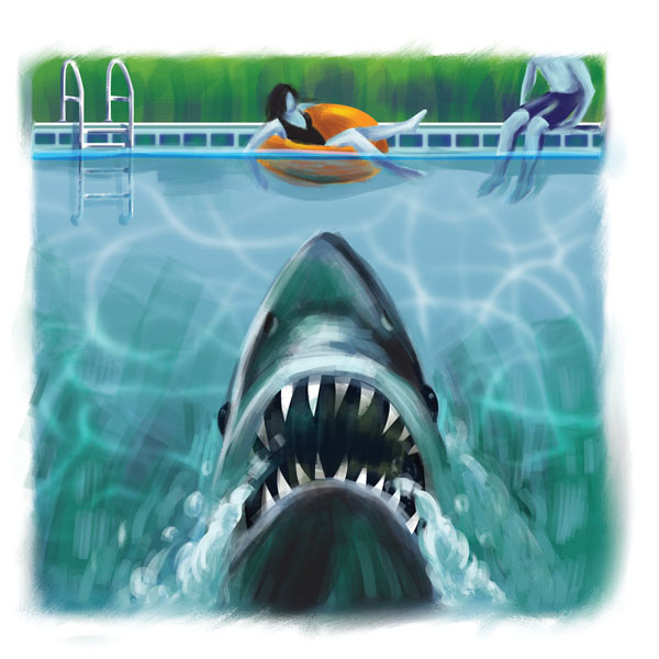 During a scene in which the body of a man is chopped in half by the shark and dragged into the ocean, turning the water red, the commotion in the pool among the movie-watchers stopped. Some students stared at the screen with their mouths open; others looked away. “That’s why we all had nightmares,” said Nye.