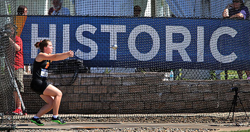 Julia Ratcliffe ’16 made history June 11 with a victory in the hammer throw at the NCAA Outdoor Track and Field Championships in Eugene, Ore. Her fifth-round heave traveled 219 feet, 5 inches — nearly seven feet farther than the second-place mark.