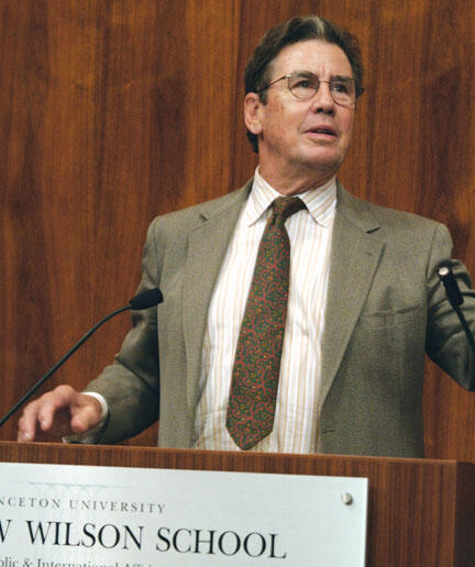 Frederick P. Hitz ’61, senior fellow at the University of Virginia’s Center for National Security Law and former CIA inspector general, urging the CIA to find new ways to gain access to intelligence sources on terrorism during a talk Sept. 25 in Robertson Hall on “Espionage in an Era of Uncertainty.”The New YorkerThe Dark Side: The Inside Story of How the War on Terror Turned Into a War on American Ideals.