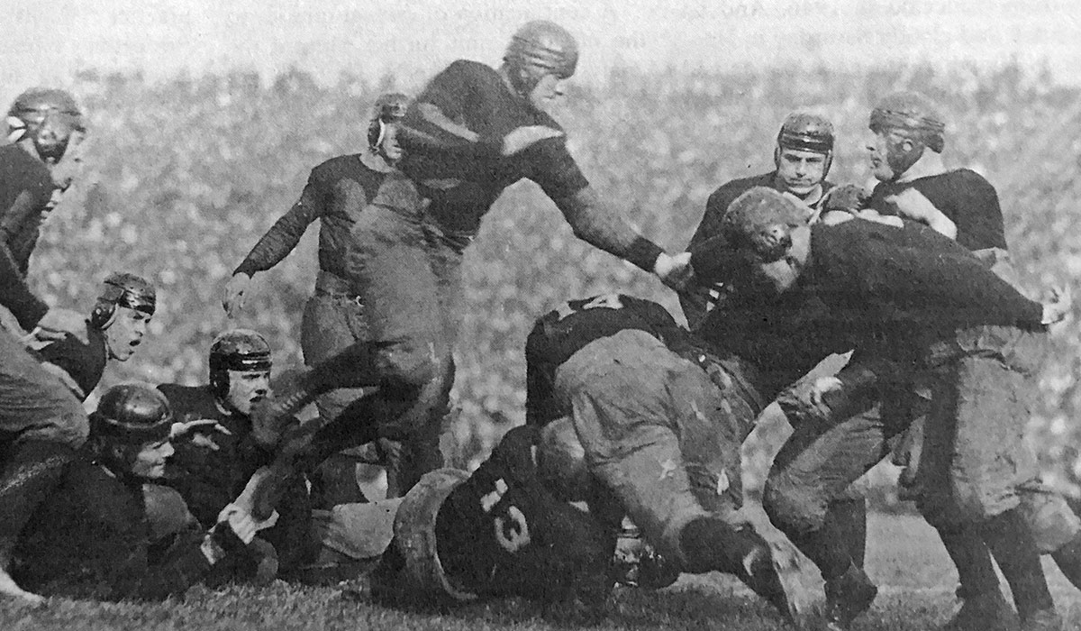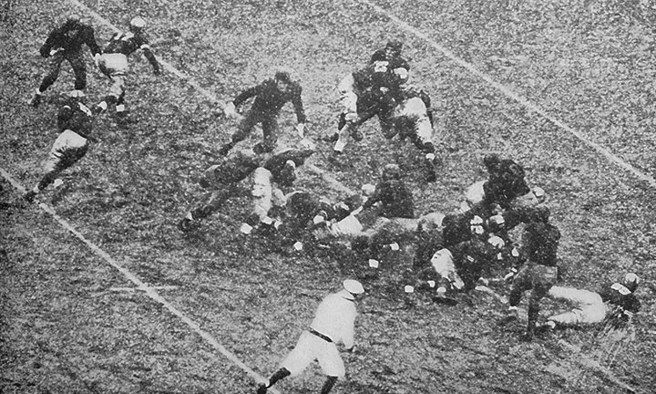 When the Princeton Alumni Weekly began publishing in April 1900, Princeton’s football team was arguably the country’s finest, with a combined record of 23-1-1 in 1898 and 1899. (Both teams were retroactively crowned national champions by football historian Parke Davis 1893.) Football coverage became a staple of the magazine, supplementing the coverage that Tiger fans could read in the major daily newspapers. Below, browse excerpts from PAW’s coverage of 11 great games, spanning more than a century.