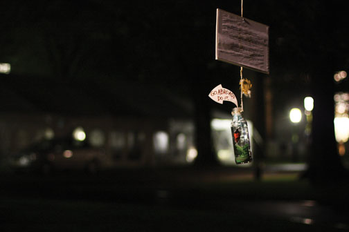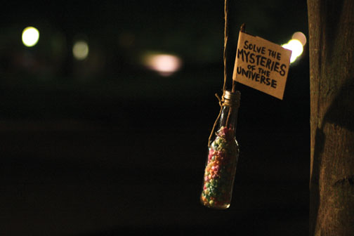 On the night before classes started, freshmen set out to find advice from alumni that was delivered in an unusual way — messages in bottles placed around campus. The idea came from the Office of the Dean of Undergraduate Students, which wanted to connect graduates with the new class. After associate dean Thomas Dunne solicited nuggets of advice from alumni, 13 volunteers from the Student Design Agency designed the bottles that would hold the messages. At right from top are three examples: “Solve the mysteries of the Universe” (designer, Mariah Min ’10); “Smile and wave at people you know” (designer, CinCin Fang ’11); “Go abroad! Do it” (designer, Mayanne Chess ’12).