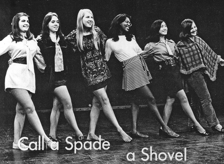 The Triangle Club’s 1969-70 production, Call A Spade A Shovel, incorporated student views of the war in Vietnam through heavy dose of political satire. That caused some problems when the group took the show on the road during the University’s holiday break. At performances in Plainfield, N.J., Wilmington, Del., and Indianapolis, audience members walked out in response to sketches like “The Prime of Miss Jean Bircher,” about a hawkish, right-wing kindergarten teacher. In Grosse Pointe, Mich., with a largely non-alumni crowd in attendance, defections reached epic proportions: Afterward, “the only ones left were Grosse Pointe’s three Democrats and a bunch of kids,” one cast member told PAW.