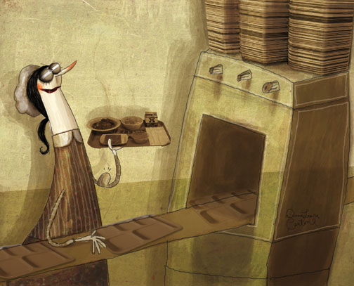 The most daunting machine aptly was nicknamed The Machine, a long metal snake in the center of the kitchen. I quickly grew accustomed to The Machine’s roar because I worked mostly on “Third Crew,” which took care of the behind-the-scenes work during meals. We handled the trays the students sent back on the line, stacking dishes, sorting silverware, and loading them into The Machine, which spit them out clean and scalding hot. As the meal neared its end, the trays came one after another with no breaks, in what we called “rushes.” I learned to move my arms lightning-fast to prevent the trays from jamming the line. During a rush, I felt challenged in a way that was less terrifying than speaking up in class or writing a long paper. My arms, which fast developed impressive biceps, did all the work; my mind could fade out.
