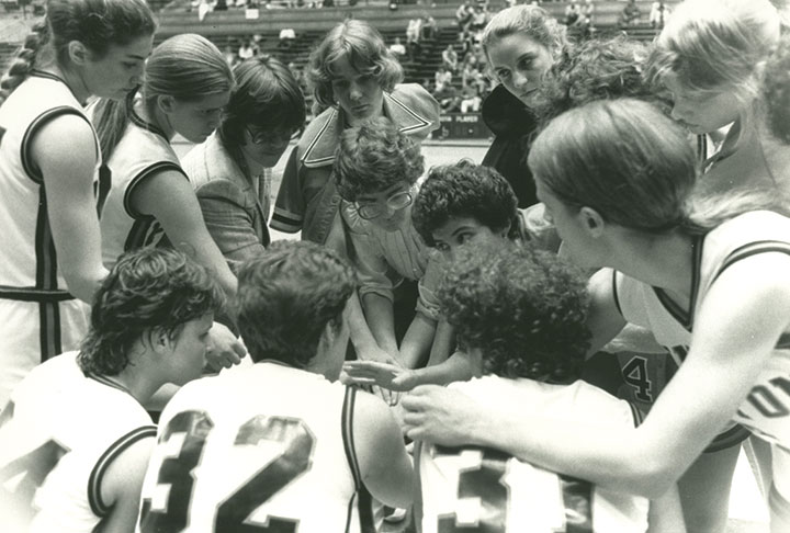 The exhibition — which contains historical letters, publications, and other objects dating back to 1969 — celebrates 50 years of coeducation at Princeton. The exhibit highlights women’s accomplishments in academics, advocacy, and athletics. Pictured here is the 1983 Princeton women’s basketball team.