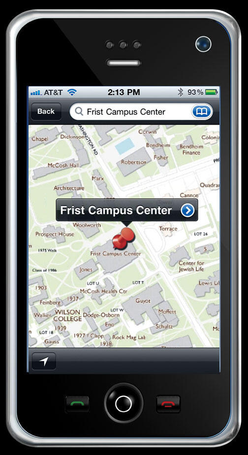In addition to displaying events and maps, iPrinceton provides access to the campus directory, news and athletics updates, videos, photos, a library search, and the full course catalog. Other enhancements are planned, Goldstein said, including data on the real-time locations of campus shuttle buses. All of the app’s information is available on public websites, so no login is required.